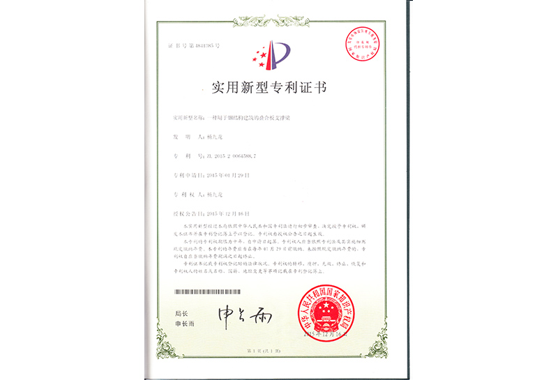 一种用于钢结构建筑的叠合板支撑梁的专利.